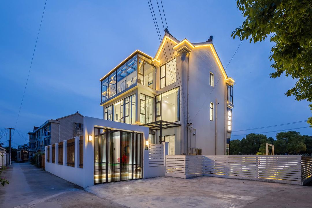 Tucked away near Disney, this hidden gem offers the perfect blend of nature and luxury. Surrounded by century-old camphor trees and bamboo forests, the villa boasts stunning river views. Kids will love the transparent slide and treehouse swings, while adults can unwind by the Moroccan-style pool. Each Nordic-inspired room is uniquely designed, with multi-functional spaces and large terraces ideal for family gatherings, weddings, or corporate events. Don’t miss the Jiuyan Bridge night views—pure magic!