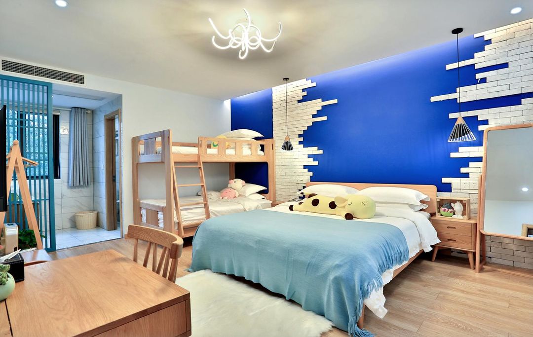 This is a family paradise, just 400 meters from Disneyland, featuring a Suzhou-style courtyard and a children's play area with slides and swings. The rooms come with smart voice control, projectors, and bathtubs, offering a VIP movie night experience. The homestay provides butler service and has laundry facilities for your convenience. Whether you're traveling with family or on a romantic getaway, there's a room perfect for you!