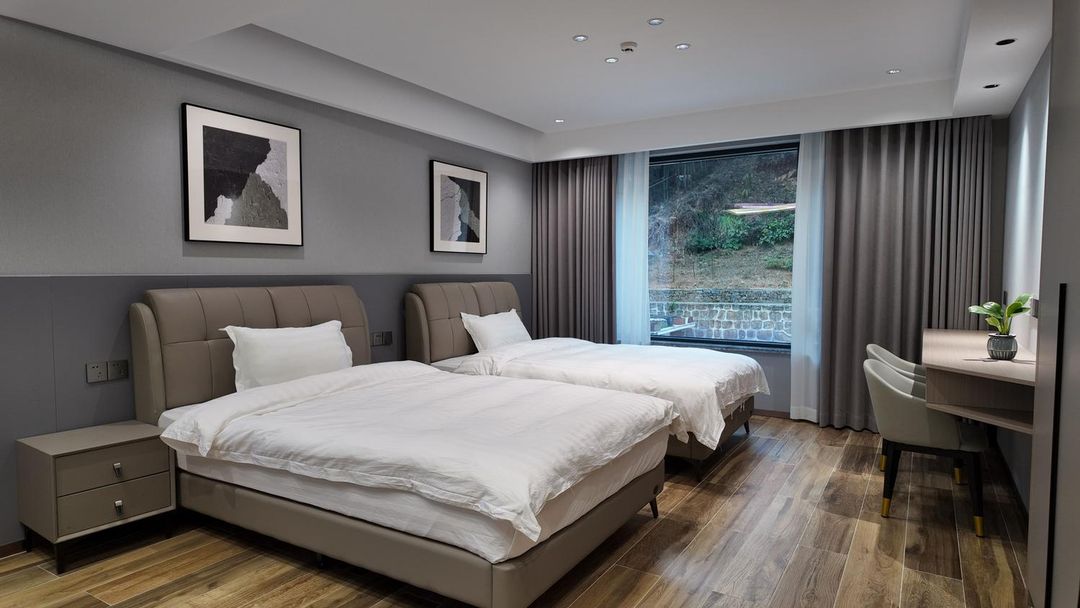Nestled among lush mountains, this resort blends natural beauty with modern comforts. Enjoy the elegance of traditional architecture, along with outdoor pools, spa treatments, and yoga classes. The eco-friendly tea gardens and orchards offer fruit-picking experiences, while the organic ingredients promise healthy dining. Perfect for business meetings or family getaways, the resort features multi-functional halls and recreational facilities. End your day with a barbecue party under the stars in the garden.