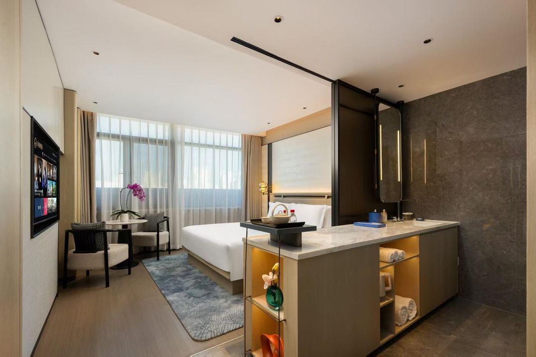 Shanghai Hongqiao The PuLi Hotel features sky terrace suites with private balconies overlooking the runway and city skyline. Just 8 minutes’ walk from the Givenchy boutique, each suite includes Italian-designed furniture and smart lighting systems. The hotel’s serene courtyard and soundproof walls ensure peace after a day of luxury shopping. Secure your view room via HopeGoo in advance.