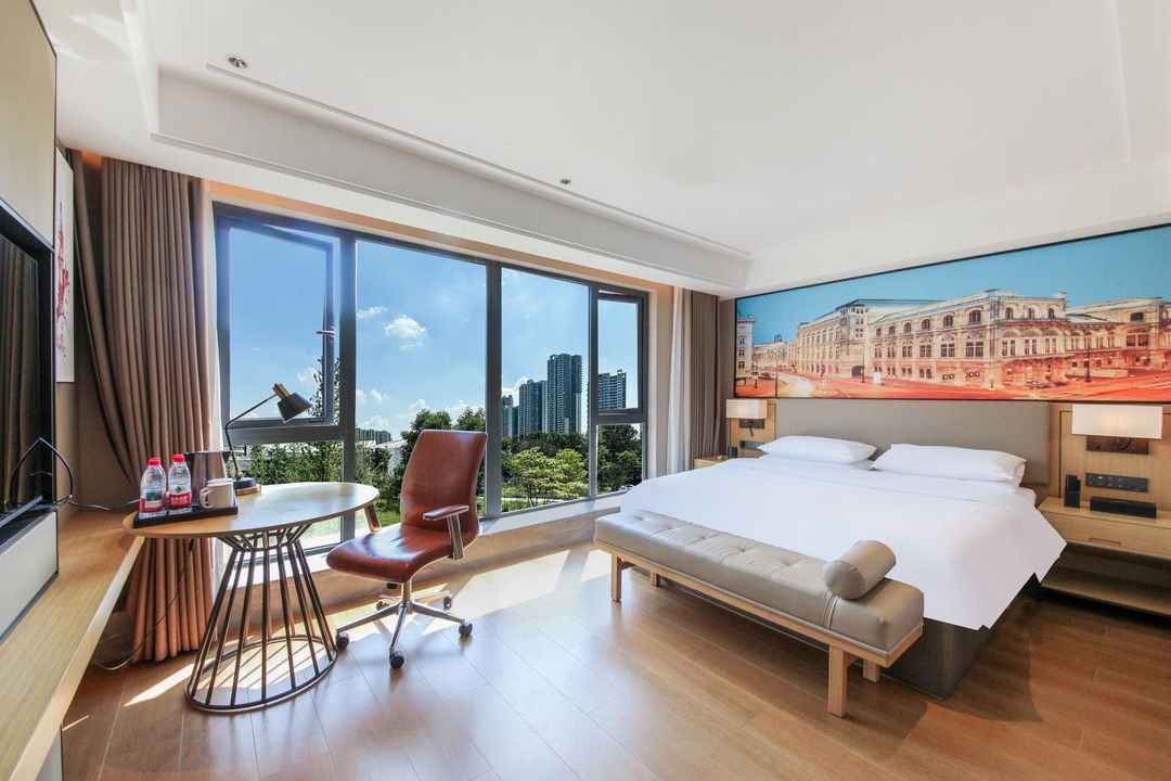 This is truly a hidden gem! Floor-to-ceiling windows offer stunning views of idyllic countryside on one side and the neon-lit Yixin Lake and Jiannan Avenue on the other. Just 200m from the subway, it's super convenient to reach Chunxi Road, Kuanzhai Alley, and the Panda Base. The bustling commercial center downstairs has everything you need. Stylish rooms are spotlessly clean, with amenities like a kids' playground and valet parking. Perfect for families or couples, it's a great value with excellent service. Don't miss out!