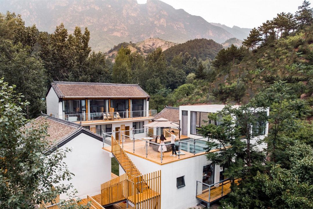 Tucked away in the Lan Valley area of Gubei Water Town, this hotel is a perfect escape from the hustle and bustle of city life! Surrounded by picturesque mountains and water, the hotel features an outdoor pool for ultimate relaxation. Blending the Great Wall elements with natural landscapes, it offers a unique wellness retreat experience. Enjoy the serene beauty of mountain mornings and sunsets. The restaurant serves a fusion of Chinese and Western cuisine, using fresh local organic ingredients for healthy and delicious meals. With a kids' playground and various entertainment facilities, it's ideal for families. Don't miss the stunning Jiuyan Bridge night view—absolutely romantic!