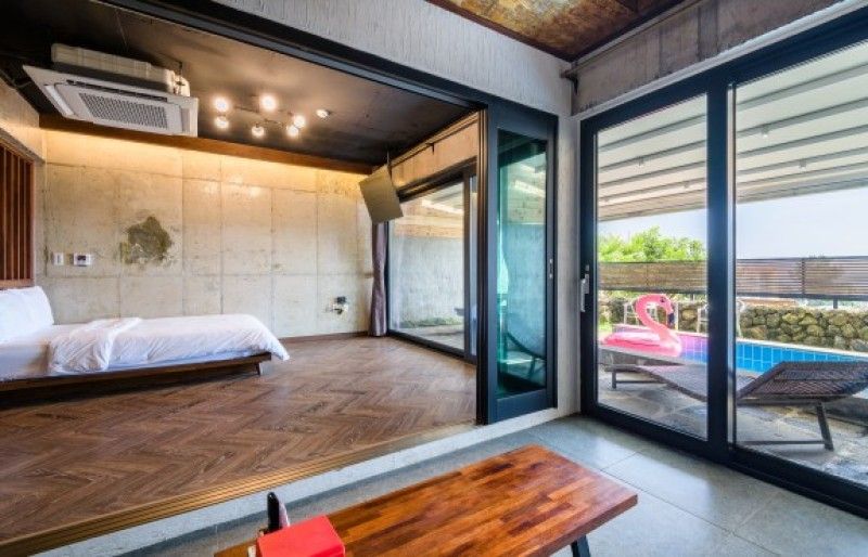 Jeju Grimm Forest Retreat is a top choice for sustainable stays near the forest. This eco-designed lodge offers panoramic views of the dense pine woods from its floor-to-ceiling windows, with rooms built using reclaimed timber and natural ventilation systems. Guests enjoy direct access to the wildlife-friendly hiking trails and can join guided nature walks led by local ecologists. The hotel features an outdoor stargazing deck, perfect for spotting constellations under Jeju’s dark sky. For exclusive rates and availability, book via the HopeGoo app.