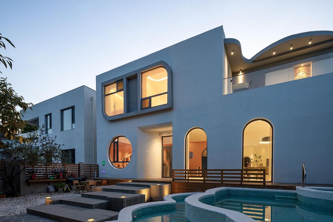 Tucked away in Huairou Jiuduhe, this rustic-style retreat is surrounded by rolling mountains and brimming with nature. Featuring 8 unique room types – from concrete pipe houses to container rooms and LOFT villas – each space is thoughtfully designed. The highlight? A 100㎡ pool with deep and shallow zones, perfect for summer escapes! With a kids' playground, BBQ area, and shared kitchen, it's ideal for family trips. Whether you want to relax by the floor-to-ceiling windows or let the kids enjoy the climbing slides, this place has it all!