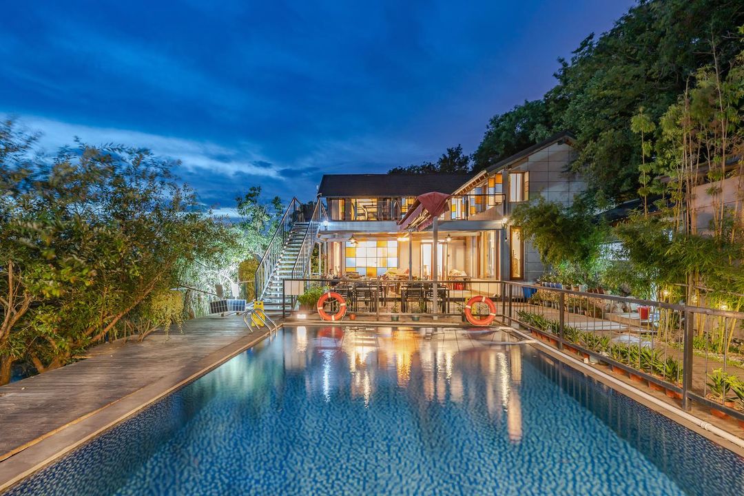 Tucked away in a serene garden paradise, this designer retreat offers breathtaking mountain and water views with crisp fresh air. Rooms feature giant smart projectors perfect for family movie nights! Kids love the playground, while adults unwind in the sauna or tea lounge – pure bliss! Pet-friendly policies mean your furry friends can join the vacation too. With attentive butler service, every detail is taken care of for your perfect getaway.