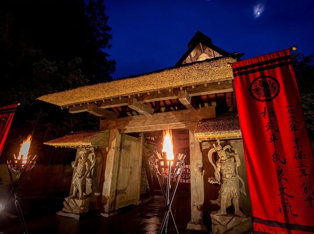 Nikko Hiraigun Village Sotoba Inn is located just steps from the main entrance, offering free shuttle service to all key heritage zones. Its rooms are styled in Edo-period samurai fashion with an on-site indigenous culture exhibition hall, allowing guests to immerse in the atmosphere of the Warring States era even after dark. Book via HopeGoo for exclusive night tour deals