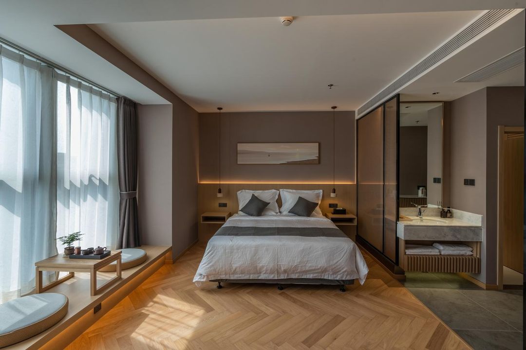 This hotel is perfect for both family trips and business travel! Located in the Chanba Ecological District, right opposite Sasseur Outlets, and close to attractions like Xi'an International Convention and Exhibition Center and Expo Garden, with a metro station just 2 minutes away. Designed in a Nordic minimalist style featuring aurora red, fjord blue, and pine wood tones, the rooms are efficiently laid out with tatami mats, sofas, and bathtubs, plus sleep-enhancing bedding for ultimate comfort. Enjoy the multifunctional lobby, gym, 24-hour laundry, and a 48+2 nutritious breakfast buffet—ideal for any traveler!