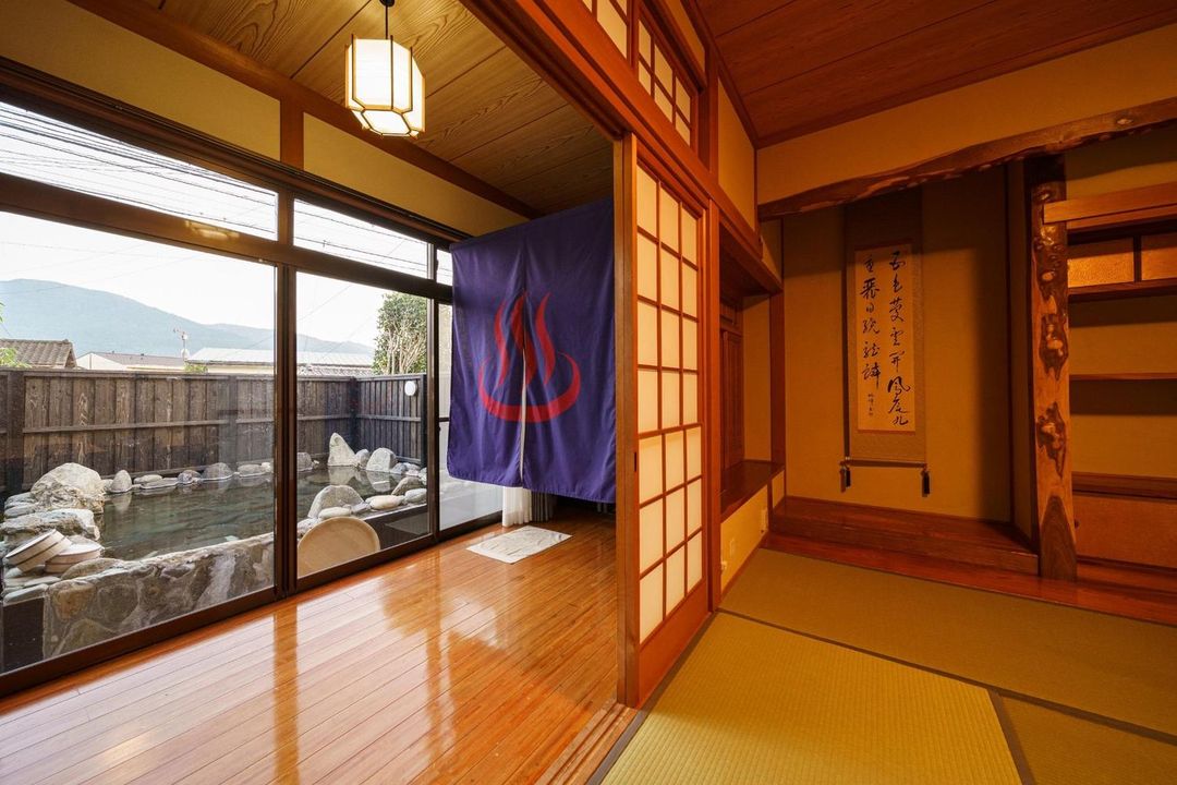 Mitsuya Ryokan Yufuin is ideal for families, offering spacious tatami rooms, kid-friendly lounges, and a dedicated children’s activity corner. Located just a 5-minute walk from Honobono Onsen Street, it provides free shuttle services to nearby attractions. Its outdoor bath area features natural stream integration with bamboo groves, creating a serene, private soaking experience. Guests receive a handmade matcha dessert box nightly. Reserve family packages through HopeGoo for exclusive benefits.