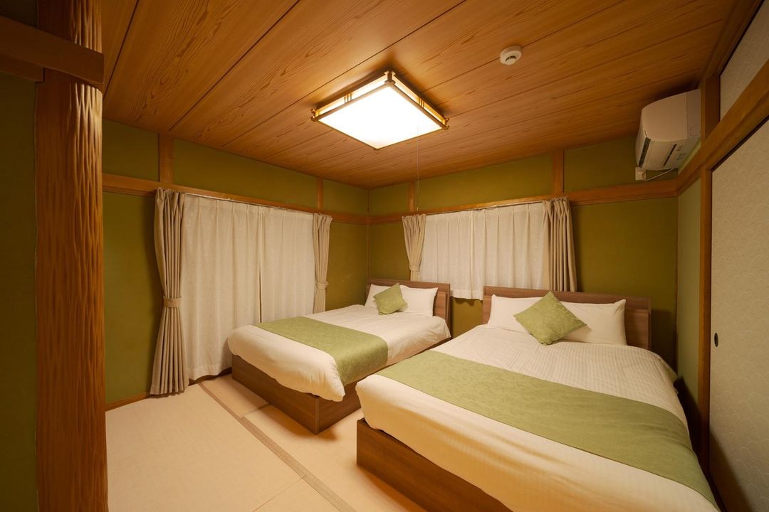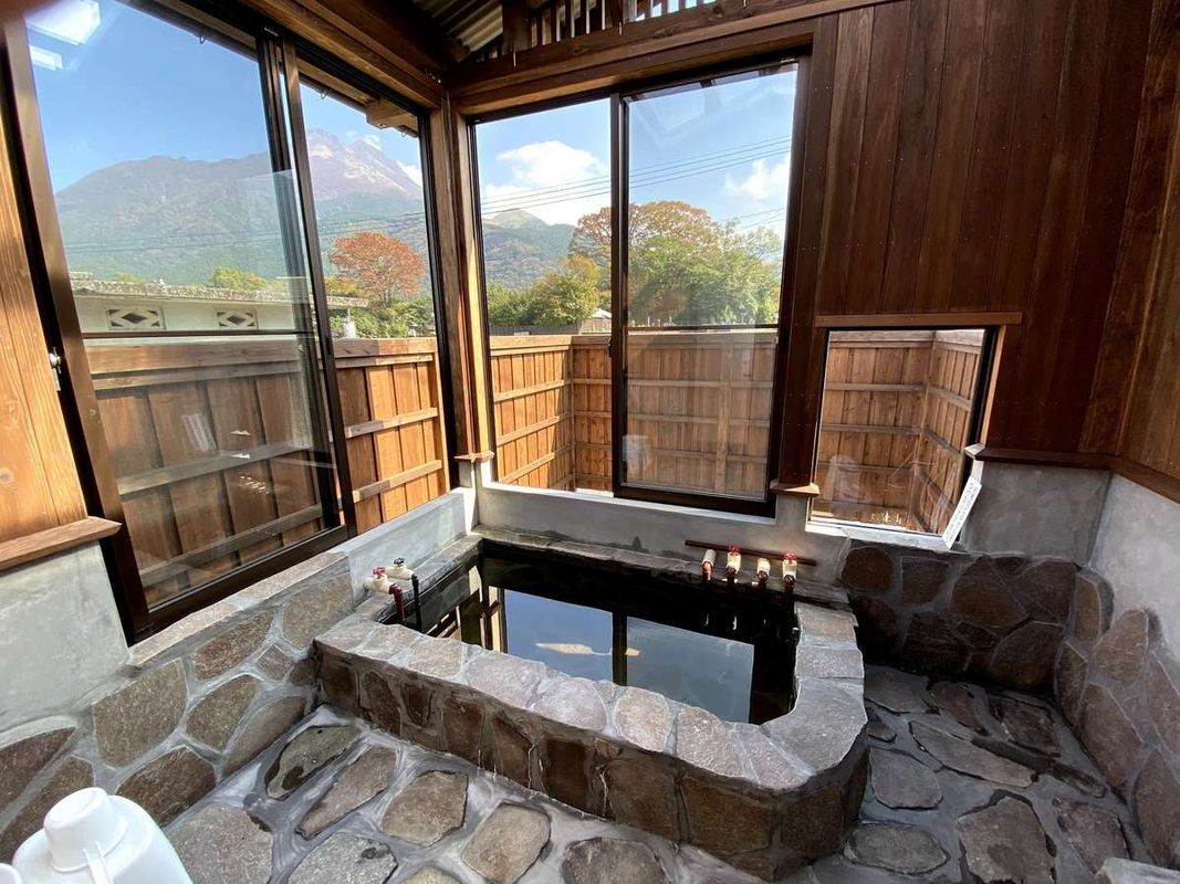 Mitsuya Ryokan Yufuin is ideal for families, offering spacious tatami rooms, kid-friendly lounges, and a dedicated children’s activity corner. Located just a 5-minute walk from Honobono Onsen Street, it provides free shuttle services to nearby attractions. Its outdoor bath area features natural stream integration with bamboo groves, creating a serene, private soaking experience. Guests receive a handmade matcha dessert box nightly. Reserve family packages through HopeGoo for exclusive benefits.