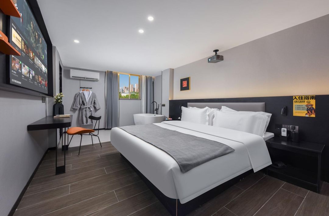 This hotel is the perfect blend of business and leisure! Located in a convenient area near the subway and airport, making transportation a breeze. The rooms feature a modern classic style, with ultra-clear projection and surround sound for an unbeatable movie experience. The 360-degree shower design ensures you can relax completely after a long day. The hotel offers excellent service, including a 24-hour front desk, luggage storage, and laundry and ironing services, catering to all your needs. Nearby attractions like Wanfu Plaza and Phoenix Mountain make it ideal for both travel and relaxation!