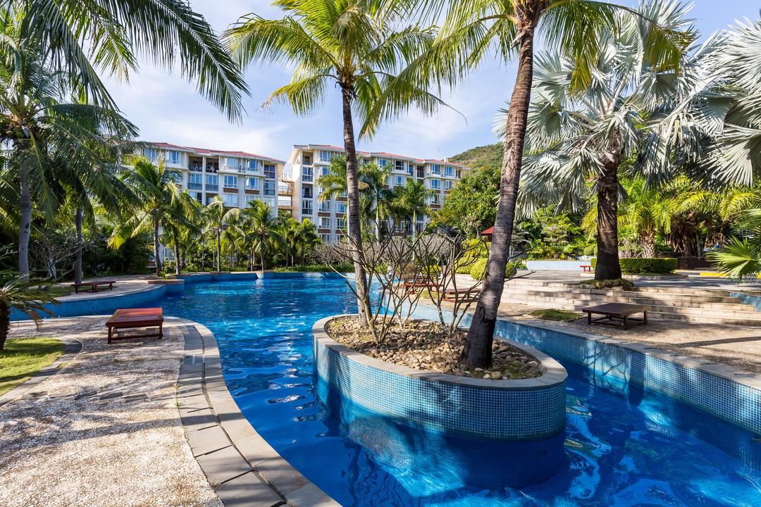 Tucked away in Yalong Bay, this hidden gem offers panoramic views of mountains, sea, lakes, and golf courses, with air so fresh it’s called a “natural oxygen bar”! Enjoy 24-hour butler service, adult and kids’ pools, and a playground perfect for families. Nearby, Baihua Valley Shopping Street and golf clubs await, plus thrilling water sports like snorkeling and sailing. The private villa area, with its coconut palms and ocean breeze, feels like a paradise getaway. Bring your loved ones for the ultimate relaxing holiday!