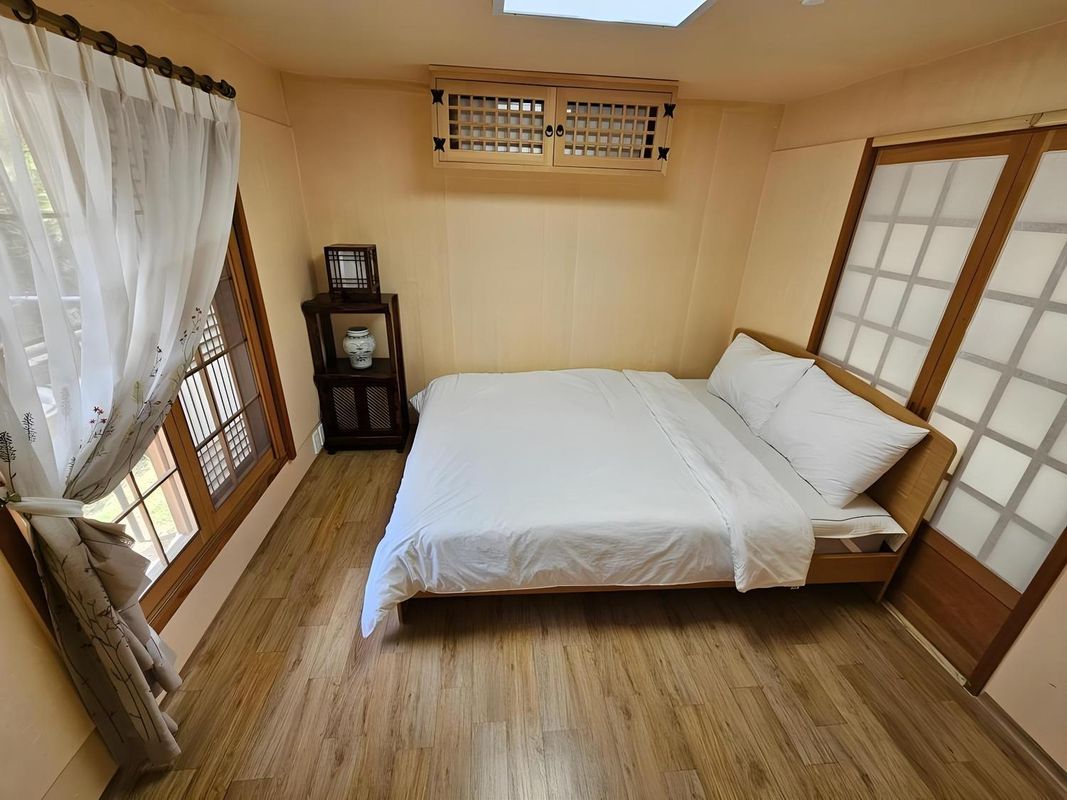Greenfield Kids Camp is ideal for families, featuring a dedicated forest play zone, parent-child farming workshops, and stargazing sessions. All rooms include fenced courtyard areas and offer traditional Korean cooking classes. Located just an 8-minute walk from the Hyo-san easy trail, it’s perfect for kid-friendly hikes. Book through HopeGoo to enjoy complimentary child stays.