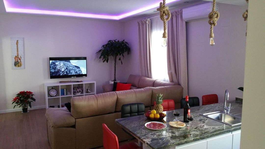 Stayed for one night and was pleasantly surprised. The room is small but clean and well-organized, with two single beds and one double bed—perfect for four people. There’s a tiny terrace, though no window, which limits ventilation. The neighborhood is nothing special, but since we only stayed overnight, it wasn’t an issue. What stood out was the friendly welcome from Ruben, the owner—he even helped us book a taxi with no hesitation. The bedding was comfortable, the TV worked fine, and the house itself has a charming layout with a shared courtyard on the upper floor that connects all the rooms. It’s a unique and cozy vibe. Plus, its location made catching our early morning flight super convenient. Overall, great value for money and a solid choice if you're just passing through Malaga.