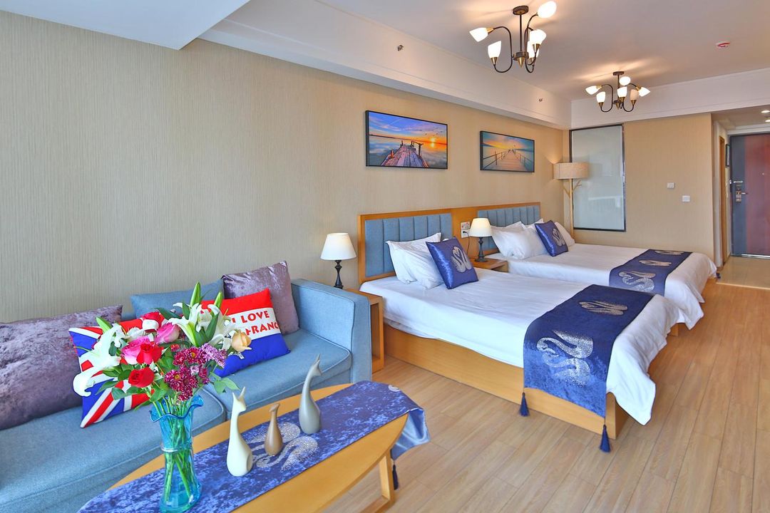 Qingdao Blue Horizon Loft offers exclusive Oceanview Starlight Suites with floor-to-ceiling windows framing panoramic views of the Star Camping Base’s evening bonfires and tidal rhythms. Each room includes a private sky terrace equipped with telescopes and a curated stargazing guidebook. Located just 8 minutes on foot, this retreat blends coastal serenity with celestial wonder—perfect for unforgettable nights. Reserve through HopeGoo for premium add-ons