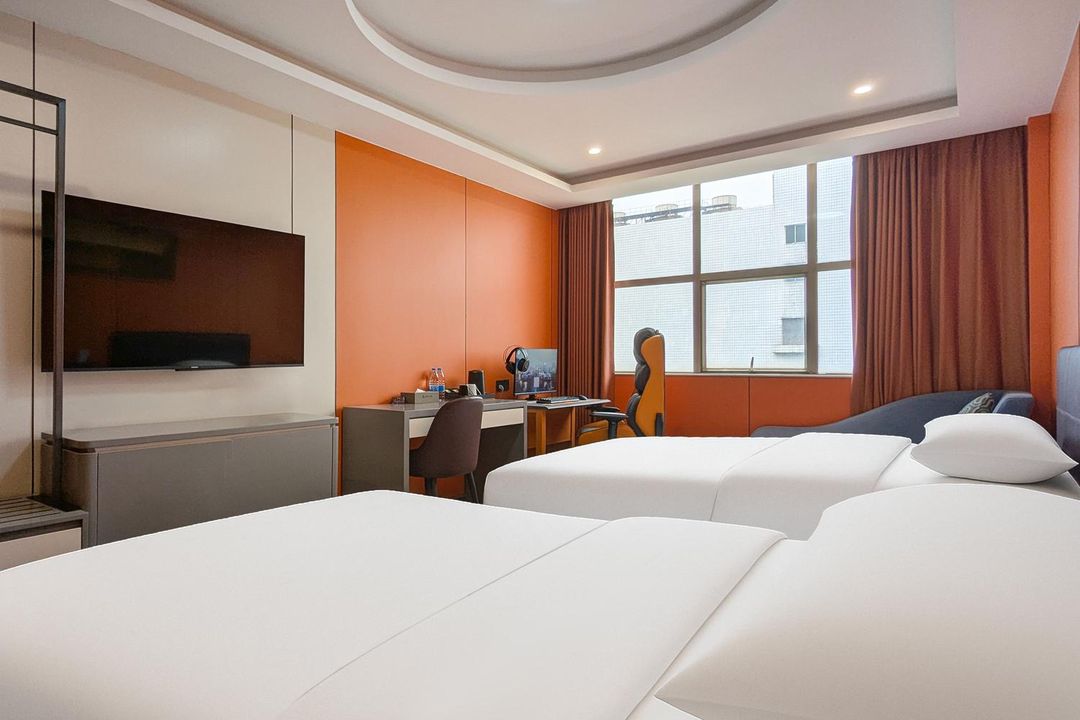Looking for a vibrant and convenient place to stay? This hotel is the perfect choice! Located in Baiyun District, Guangzhou, it's just 35 minutes from the airport and offers easy access to shopping malls and food streets, with Korean Town only an 8-minute walk away. The hotel features meeting rooms, a gym, and a café, catering to both business and leisure travelers. Its retro-inspired design blends seamlessly with modern touches, and family-friendly amenities make it ideal for all ages. Enjoy a cup of coffee and a good book, making your journey truly exceptional!