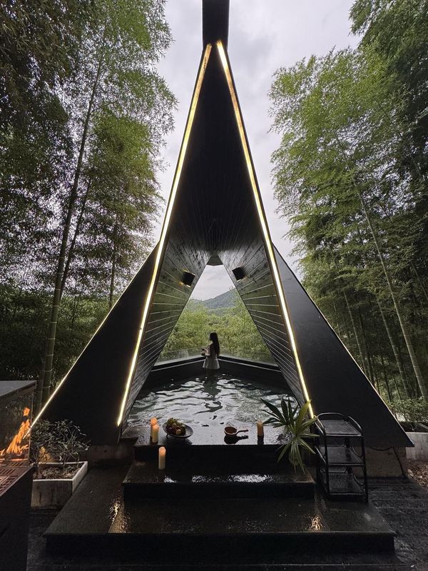 Jiayun Mountain Tranquility Pavilion sits nestled at 800 meters above sea level, surrounded by ancient trees and clear streams. Each room features natural aromatherapy devices and Zen-inspired interiors. Daily morning mindfulness sessions and breathwork classes foster inner calm. With no loud entertainment, only birdsong and breeze, this sanctuary is ideal for deep rest—book your private retreat through HopeGoo.