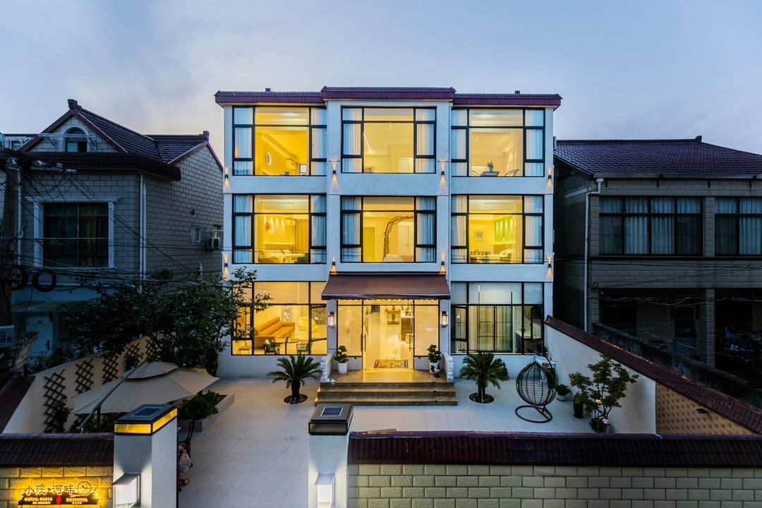 Nestled by the woods and streams, this modern minimalist retreat features four cozy buildings with a serene wabi-sabi vibe. Enjoy lush lawns, chill terraces, a stylish dining area, and manicured gardens—every corner is Instagram-worthy! Just 10 minutes to Disney, close to Pudong Airport and wildlife parks, with easy metro access. Packed with amenities: kids’ pool, BBQ area, home theater, and even fruit-picking activities—perfect for families or group getaways!
