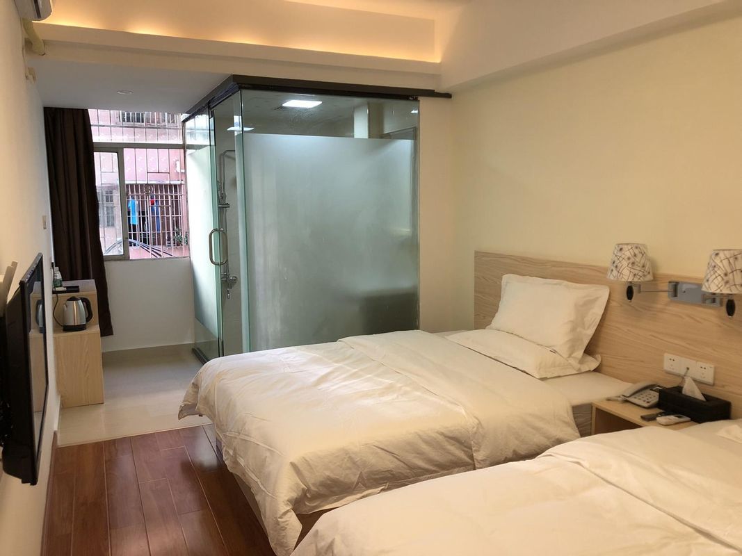 Junlan Hotel, located within the Junlan Tower complex, features panoramic city views from its high-floor rooms overlooking Shenzhen's central business district. The hotel offers smart room technology and a premium lobby experience, with easy access to Shenzhen Civic Center Park and the Shenzhen Library—just a 5-minute walk. For the best skyline vistas, book a corner suite with floor-to-ceiling windows through HopeGoo for exclusive amenities.