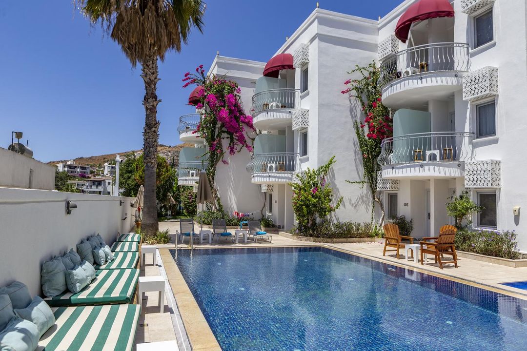 Check-in was quick and smooth upon arrival. The room was spotless, everything worked perfectly, and the balcony led to a quiet corner with a small table and two chairs—ideal for relaxing outdoors in the evening breeze. The hotel has a compact but stylish pool that’s perfect for cooling off on hot days; the loungers are sturdy and comfortable. The courtyard is thoughtfully designed with a modern touch, adding to the overall charm. Breakfast is served on the terrace by the pool—plenty of options including coffee, machine-made hot chocolate, scrambled eggs, fresh vegetables, cheese and cold cuts, bread, pastries, ham, milk, boiled eggs, and more. It’s a well-rounded meal that satisfies even the hungriest appetite. If you want something different, there are several local cafés just steps away on a quiet street—perfect for a casual breakfast. I left my luggage at the front desk before checking out, and later my sister joined me—the staff kindly allowed us to store both bags together. They even spoke Russian, which made things extra easy. Overall, this is an excellent value-for-money choice for a short trip to Bodrum. I’d definitely stay here again if I’m back in town. Great hospitality and a wonderful experience!