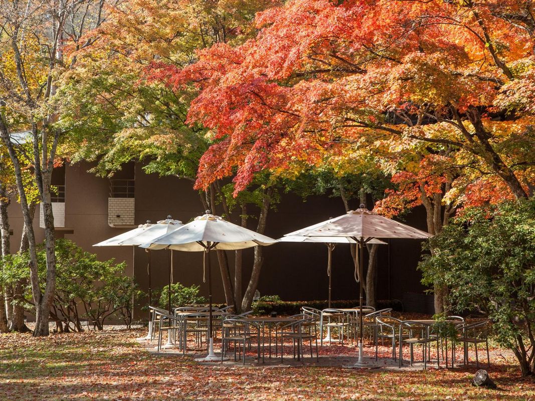 Karuizawa Four Seasons Hotel delivers breathtaking views of Koasamayama during peak fall season, with rooms and private onsen facing the mountain. The property offers guided forest walks and traditional Japanese tea ceremonies. Located just a 10-minute walk from the Koasamayama trailhead, it’s ideal for nature lovers. Book through the HopeGoo app to access exclusive wellness packages with breakfast included.