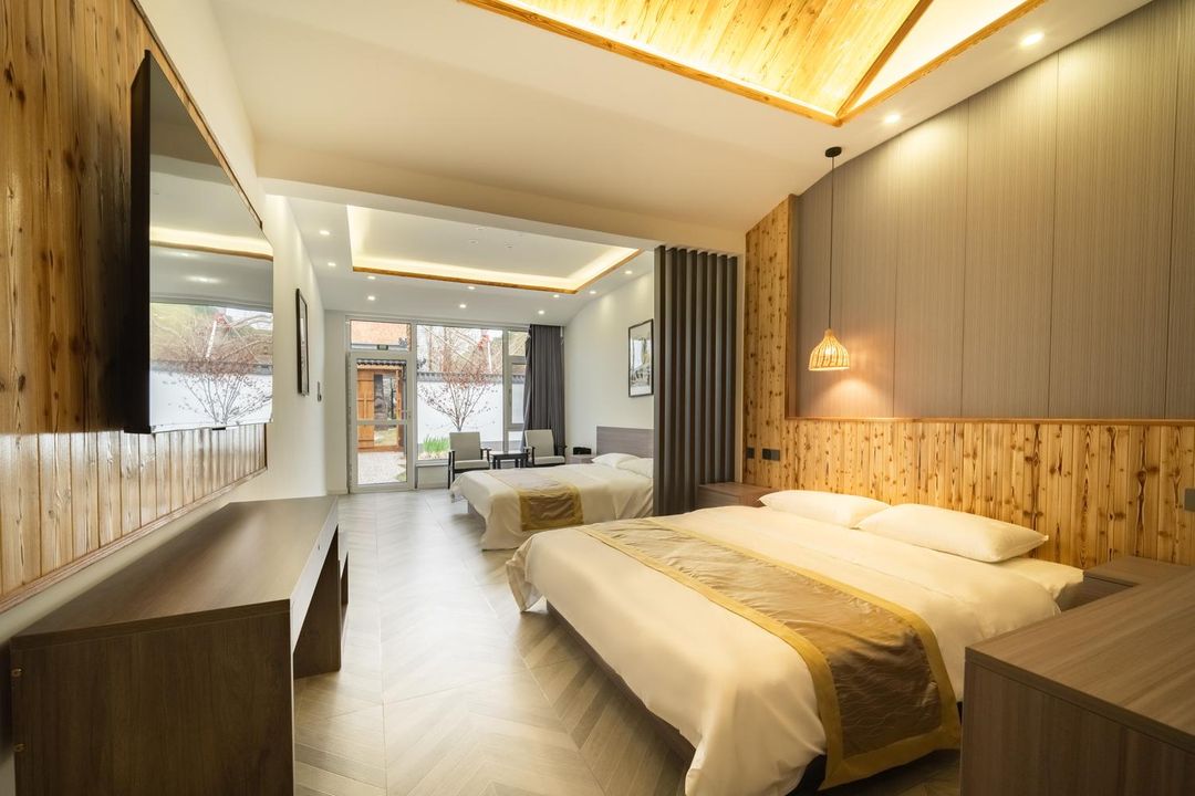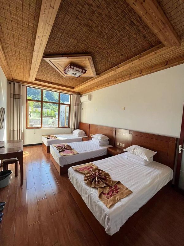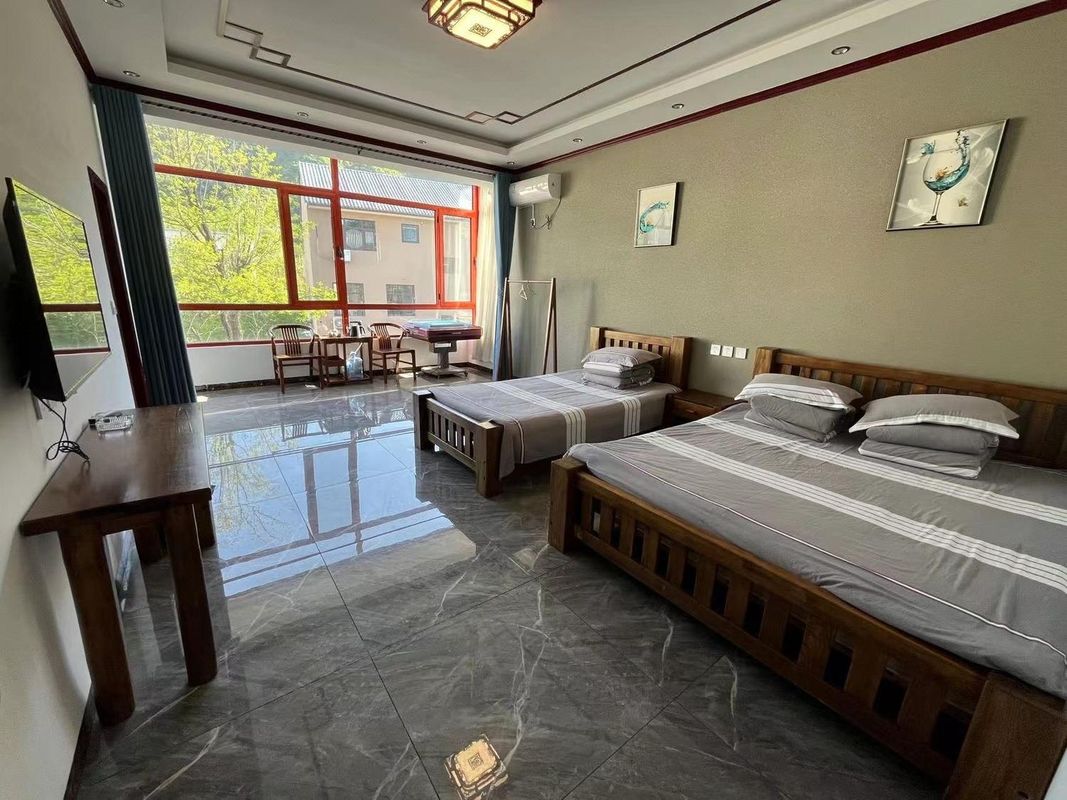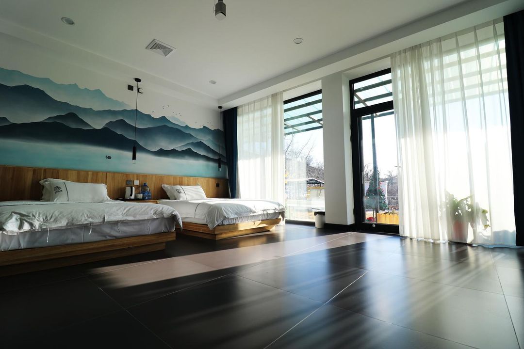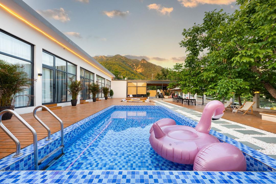 Looking for a getaway from the city? This is your perfect escape! Nestled in the heart of Ji County's scenic area, it's surrounded by attractions like Jiushan Mountain Natural Scenic Area and Huangyaguan Great Wall. The property spans over 100 acres, featuring vast outdoor spaces, picking gardens, fishing ponds, and a swimming pool—ideal for family fun. Inside, enjoy quality dining and a luxurious outdoor bathtub. Whether you're into BBQ, stream trekking, or just relaxing with tea, this place has it all!