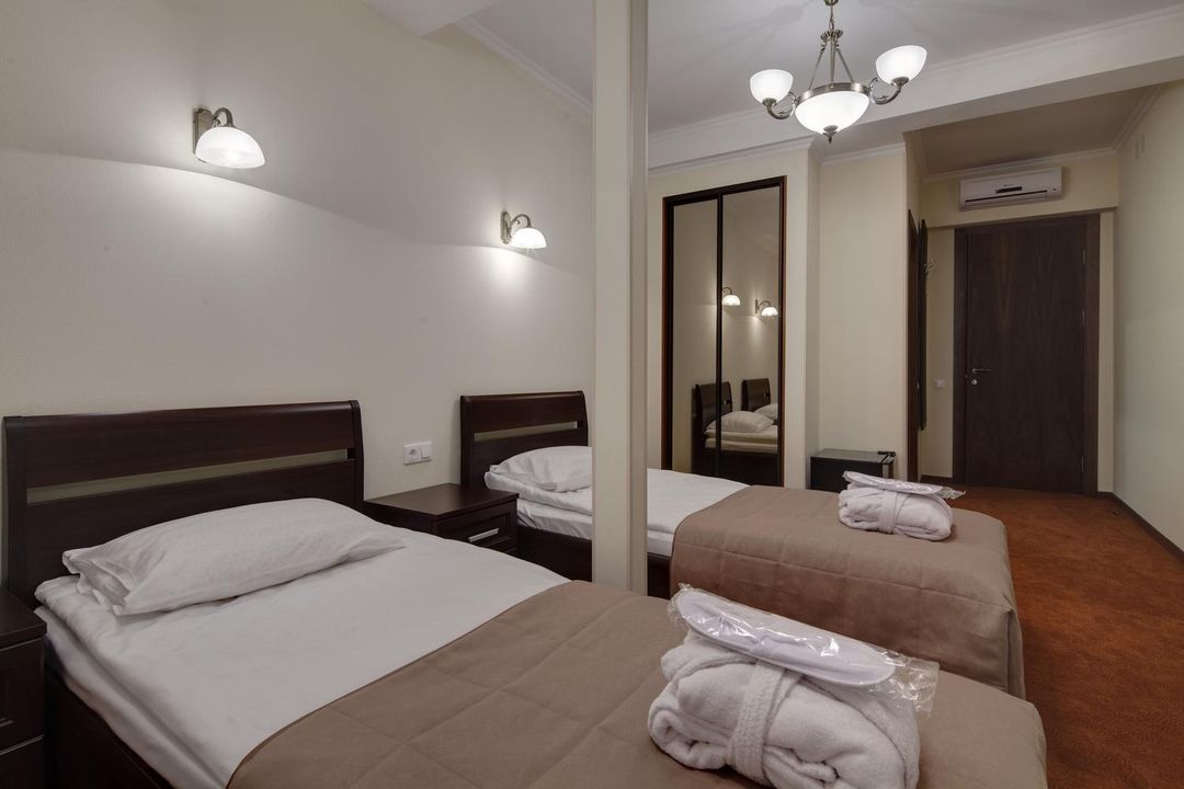 Stayed from June 19 to 26 — the location couldn’t be better. Everything is within walking distance: shops, cafes, restaurants, and attractions are all just steps away. The room was small but spotlessly clean, and housekeeping came by every day, which was a nice touch. Our unit faced the inner courtyard, so it was quiet and peaceful — perfect for a good night’s sleep. One tip: if you need air conditioning, make sure to request it during booking, as it wasn’t included in the room. We didn’t opt for breakfast, so I can’t comment on the food quality, but there are countless dining options nearby, ranging from cozy cafés to authentic Russian eateries — great variety for every taste. Overall, this place offers excellent value, convenience, and comfort. Definitely worth staying again.