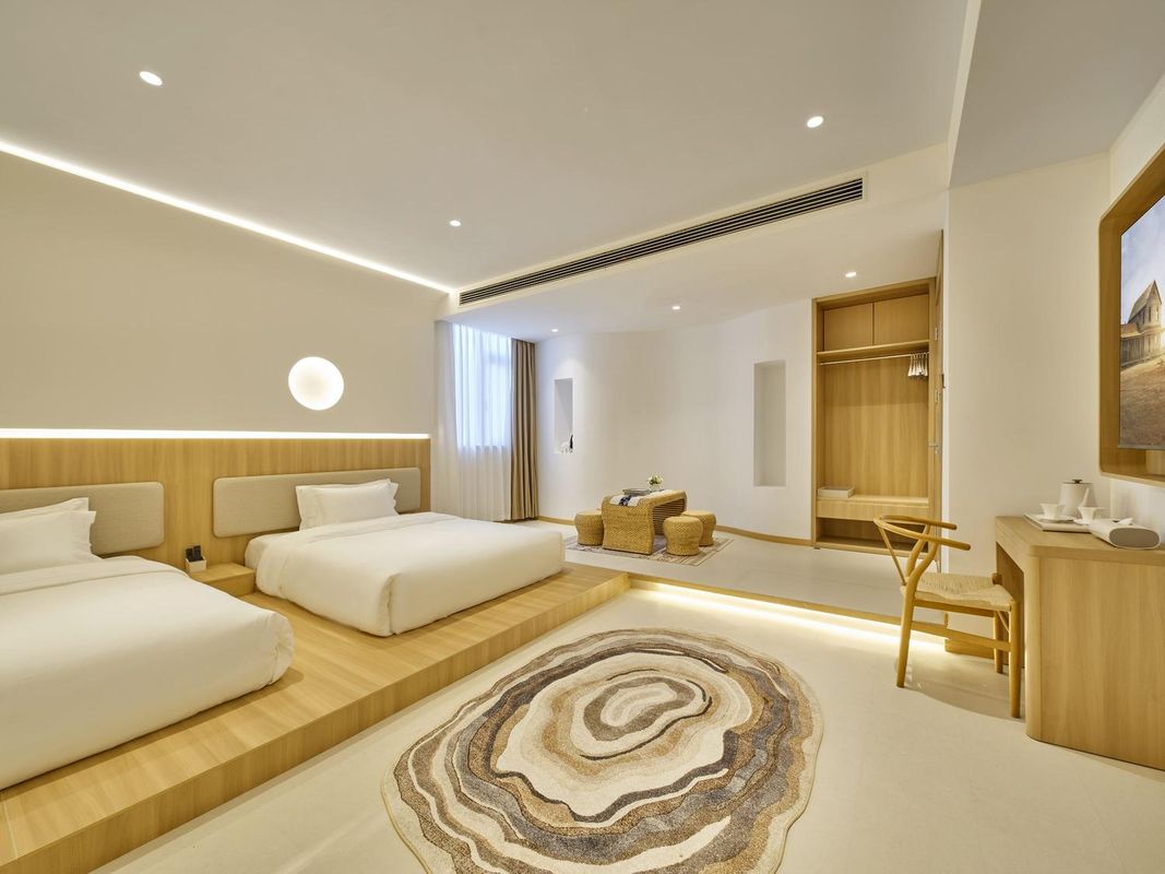 Nanjing Yunqi Villa is a sanctuary for photographers, nestled among ancient ginkgo trees just 700 meters from the park. Its "Light & Shadow Rooms" feature adjustable window shades that allow for stunning natural light compositions during the day and long-exposure night shots of park lanterns and stars. Staff are trained to support photography needs, and free tripod rentals are available. Each room includes a dedicated storage cabinet for gear. Book via HopeGoo to receive a limited-edition city night photography album.