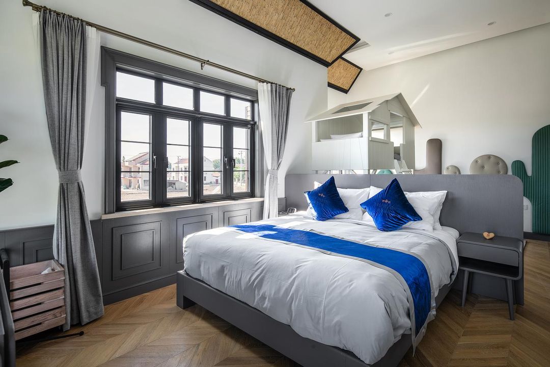 Nestled in a rice culture town, this luxurious courtyard blends modern aesthetics with traditional Chinese architecture. Rooms feature elegant designs, high-end custom furniture, and premium bedding, some even with private gardens overlooking rice fields. Located on Chongming Island, it's just a 10-minute bike ride to the Yangtze River for stunning sunrises and sunsets. Enjoy fresh produce from the on-site organic garden, perfect for families or couples seeking a peaceful retreat. With thoughtful service and top-notch amenities, it's an ideal escape from city life!