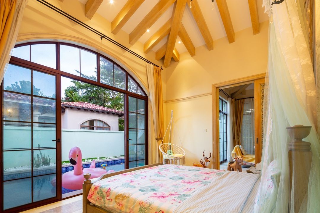 This is a true seaside paradise with a private pool and garden, offering ultimate privacy! The villa features Asian-French architectural style, blending luxury with tropical vibes. Rooms are equipped with premium bedding and entertainment facilities like big-screen projectors, mahjong tables, and game consoles, perfect for families or friends. The community also has a kids' playground and public pool, with nearby attractions like Haitang Bay Duty-Free Mall and Wuzhizhou Island. After dinner, take a stroll by the beach and enjoy the breeze and sand—pure relaxation!