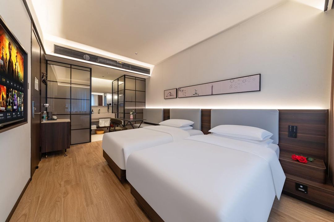 This hotel boasts a prime location next to the historic Shamian Island, with stunning views of White Goose Pool. Just a few minutes’ walk from the subway, it’s incredibly convenient! The rooms are equipped with smart controls, 100-inch giant screen projectors, and King Koil mattresses for ultimate comfort. Facilities include a buffet restaurant, gym, and laundry room, perfect for families or business trips. Surrounding areas are filled with authentic Cantonese cuisine and local snacks, making it the ideal choice for your stay!