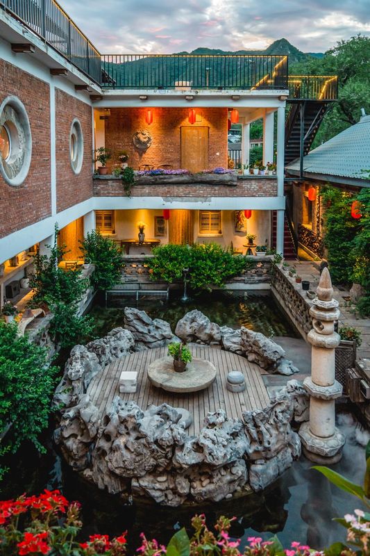 Nestled near the Great Wall at Mutianyu, this boutique retreat transformed from a village school features 20 uniquely styled rooms across four buildings. Raw materials harmonize with seasonal hues, with each window framing a panoramic view. Wander through woodland paths, relax by the lotus pond, or forage in the native chestnut forest. Enjoy fishing, open-air barbecues, and pet-friendly amenities. Whether you're a stressed urbanite, creative soul, or family seeking serenity, this eco-chic haven offers the perfect escape with artisanal touches at every turn.