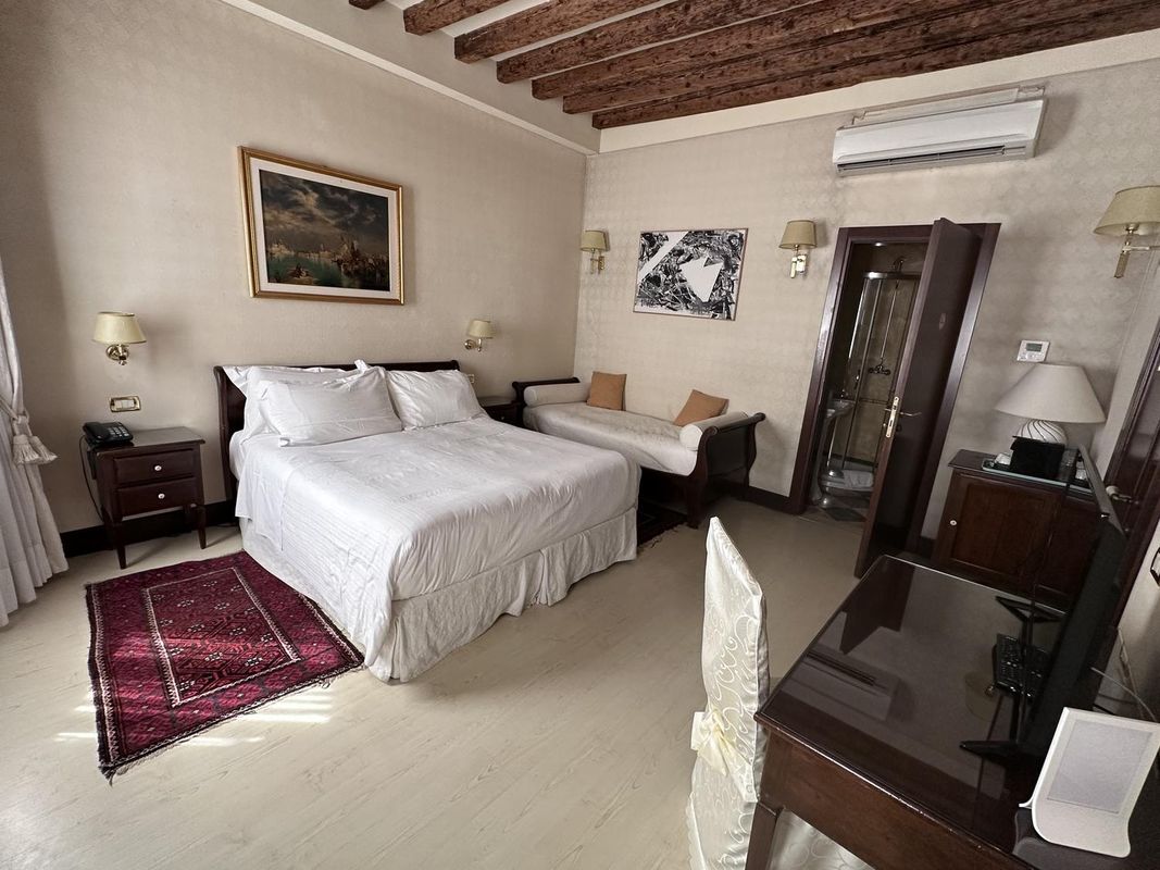 My 11-year-old son and I had a wonderful solo trip to Venice, and our stay at Albergo San Marco was absolutely top-notch. With a packed daily schedule, my main priorities were a spacious bed, quiet surroundings, no unpleasant odors, easy access to showers, and a convenient spot to wash small items like shorts and socks—this room checked all those boxes perfectly. The location is unbeatable: just a 5-minute walk to St. Mark’s Square, making sightseeing super easy. The little balcony was a highlight—on warm evenings, we’d open the window instead of using AC, letting in cool breezes. Breakfast was excellent; since I’m currently managing my sugar intake, I stuck to plain yogurt, tomatoes, cucumbers, oatmeal, and ham—perfectly satisfying. The coffee was rich and delicious, and there was a water dispenser offering mineral water with a subtle fruity hint but zero sweetness—so refreshing! There’s also a little hidden perk: if you ask, staff can bring you orange juice or a fried egg and bacon breakfast combo. The only minor downside? No in-room drinking water dispenser—but honestly, that didn’t ruin the experience. Overall, this place offers great value, comfort, and charm. I’d definitely come back.