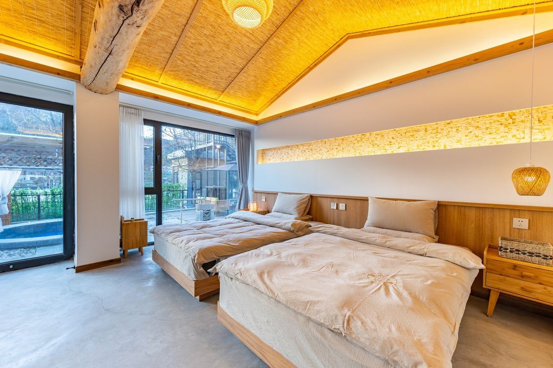 Looking for a peaceful getaway? This 1,200㎡ standalone villa is perfect for you! With 6 bedrooms, each featuring a private hot spring bathroom, and decorated with micro-cement and solid wood, it’s both eco-friendly and luxurious. The floor-to-ceiling windows offer stunning views! The basement has a KTV room, mahjong table, kids’ play area, fitness equipment, and gaming consoles—fun for the whole family. The second floor boasts a scenic terrace and BBQ area, perfect for stargazing at night. Free parking is available, making it ideal for road trips. Nearby attractions like Huairou’s Great Wall and Yinshan Pagoda Forest ensure you’ll never run out of things to do!