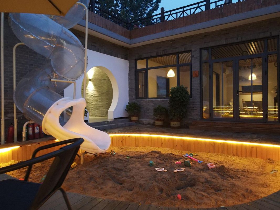 Tianjin Geopark Light Boutique Hotel is situated directly next to the main entrance, just a 3-minute walk away. Inspired by geological formations, the lobby showcases a massive rock sculpture and real-time geological data displays. All rooms feature soundproof windows and complimentary shuttle service. Each room includes an outdoor stargazing platform, ideal for viewing stars and distant Taihang Mountain ranges—perfect for astronomy enthusiasts.