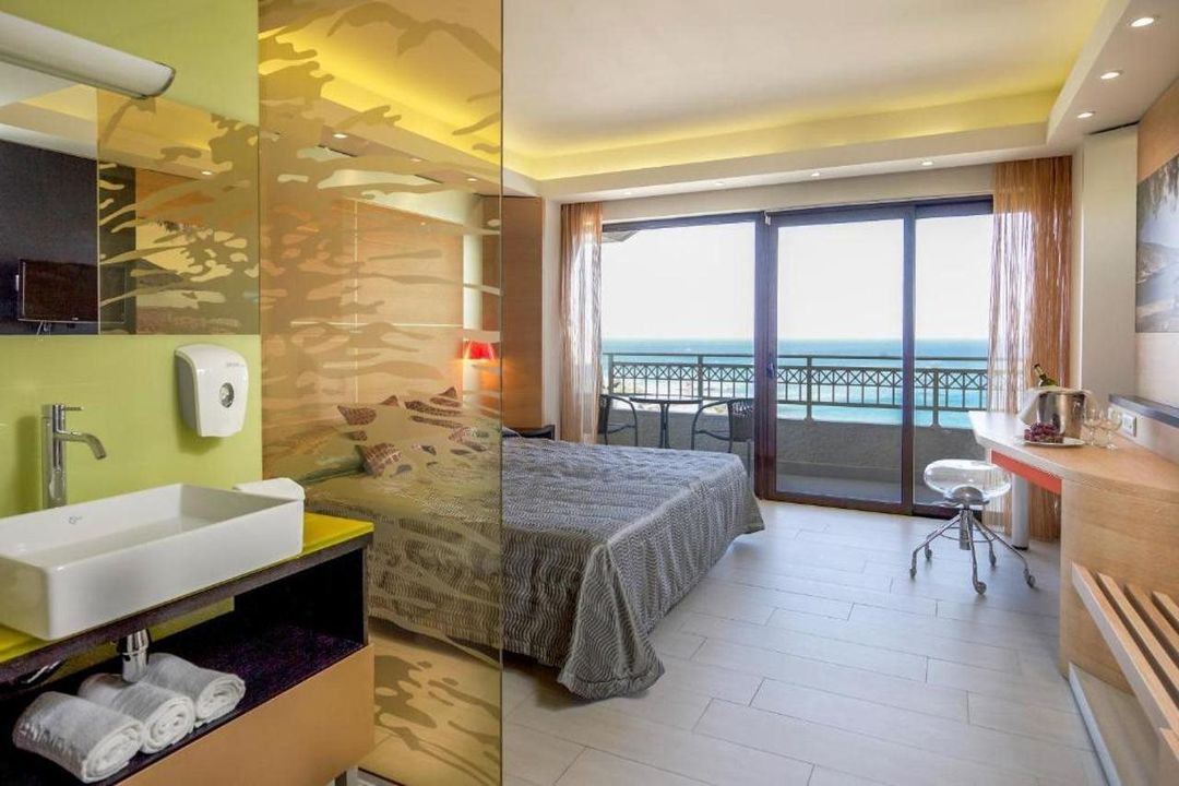 Family-friendly paradise! Bask in the Greek sun with direct beach access and exciting amenities like a water park and kids' club, plus babysitting services for worry-free relaxation. Enjoy diverse dining at 3 restaurants or unwind at poolside bars, with complimentary breakfast daily. Rejuvenate at the full-service spa or soak up the sun on the private beach. Business travelers appreciate the conference center and 24-hour front desk, while the prime location steps from attractions and free WiFi/parking make every stay seamless.