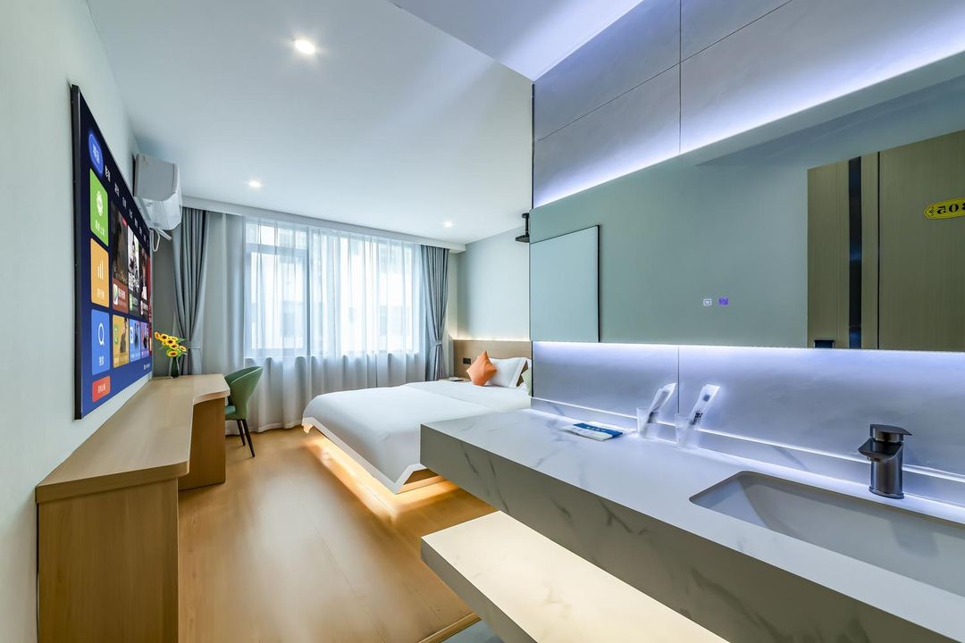 This hotel is a perfect choice for family trips! The kids' play area and robot service will keep your little ones entertained, while the laundry room and dryer make travel laundry a breeze. Featuring premium brand mattresses and high-density cotton bedding for ultimate comfort. Great location near Wanda Plaza with tons of dining options, plus free parking! Newly opened with modern facilities, 24-hour front desk and luggage storage add convenience. Bring your family for a memorable stay!