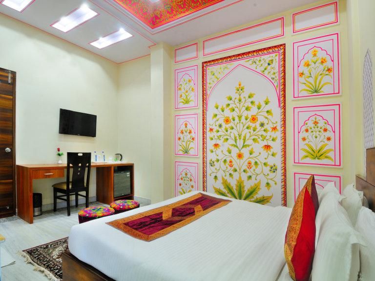 Shanti Palace Hotel offers spacious family rooms with connecting doors and a dedicated children's play area. The hotel features outdoor dining serving authentic Rajasthani cuisine and provides family-friendly guided walks along the mountain trail. From every guest room, you can enjoy views of the lush greenery and ancient stone paths leading up Monkey Mountain. All rooms include air conditioning, private bathrooms, and high-speed Wi-Fi. Book through HopeGoo for special family packages and early HopeGoo benefits.