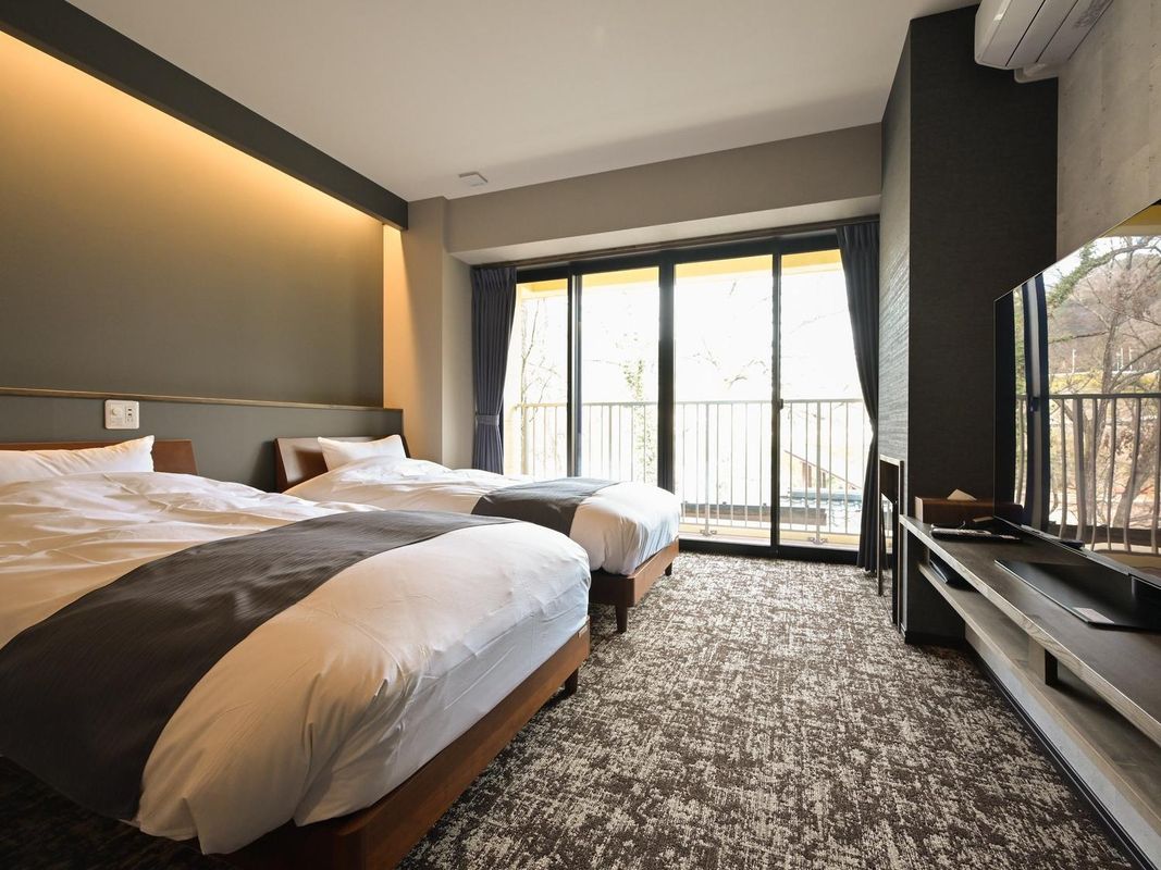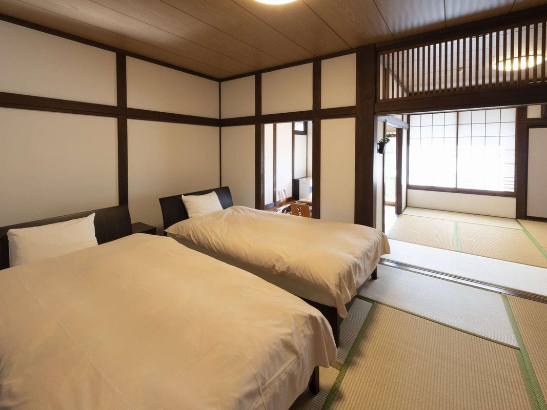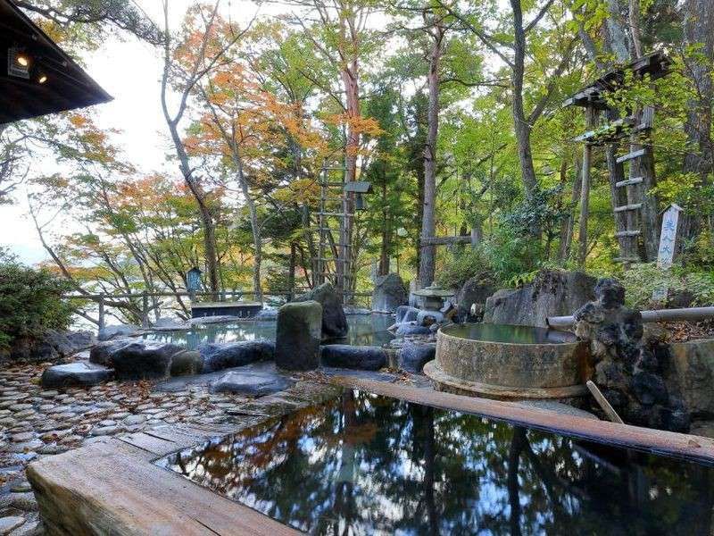 Mizuma Onsen House offers private outdoor baths surrounded by forest and mountain vistas. Crafted from local timber, each room blends traditional Japanese design with modern comfort. The hotel provides free rental hiking poles and guided trail maps, enhancing your connection with nature