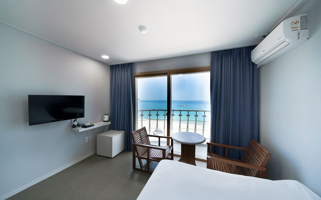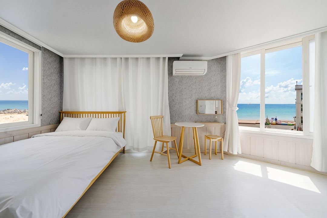 Gochang Yeongpyeongdo View Hotel is ideal for sunrise lovers, featuring floor-to-ceiling windows facing the East Sea. Guests can enjoy uninterrupted sunrise panoramas from their rooms, just a 3-minute walk from Yeongpyeongdo. The hotel also offers a private seaside terrace and an indoor hot spring bath open 24/7. For best availability, book through the HopeGoo app.