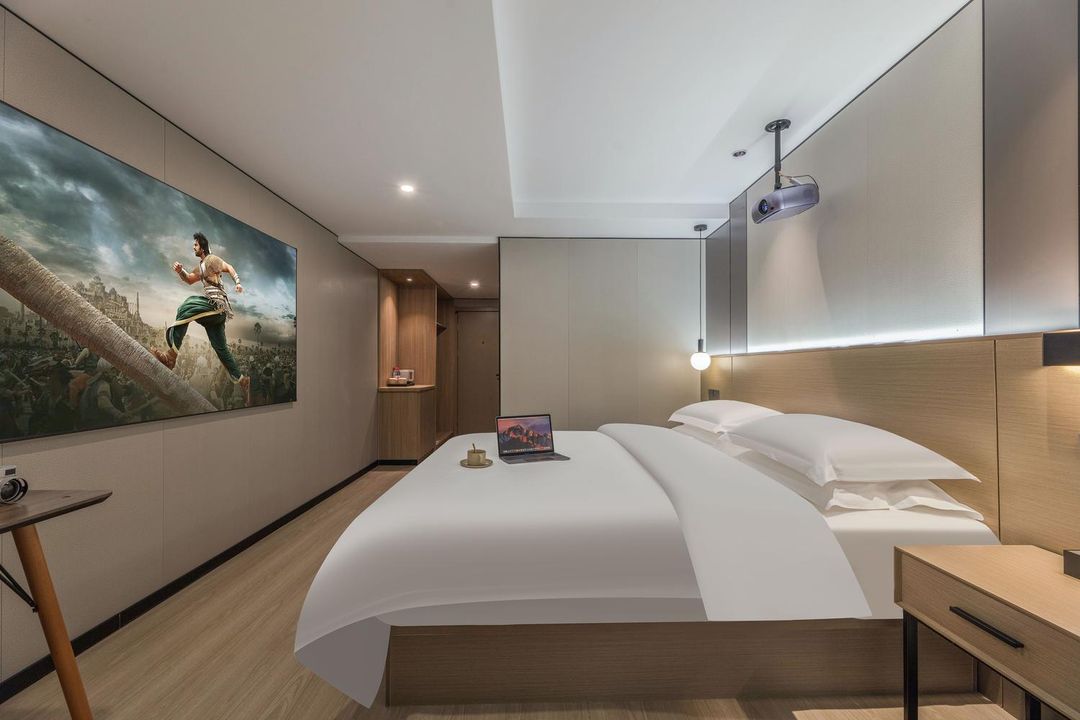 The rooms include voice-activated smart assistants that support both Simplified and Traditional Chinese, enabling real-time access to nearby heritage exhibitions. Book via HopeGoo to receive a complimentary night tour shuttle and priority entry to the Moon Lake Scenic Area and Three Rivers Light Show.