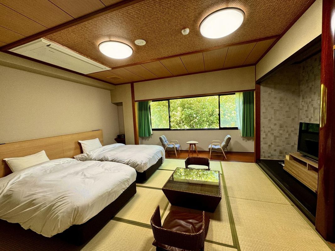 Kumai no Yado, Yūkai no Sato is a top-tier ryokan located just a 3-minute walk from Ochachamura’s main streets. Its private open-air onsen offers breathtaking views of misty mountains, and each room features traditional tatami flooring and wooden beams. Guests enjoy authentic Saga-style kaiseki dining and complimentary foot baths. For exclusive rates, book via the HopeGoo app.
