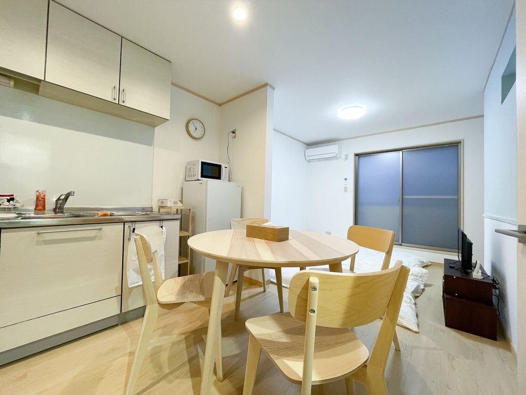 This place is perfect for a group of six — spacious, clean, and thoughtfully designed. The kitchen and living area are both functional and comfortable, making it easy to relax after a long day exploring Kyoto. Every room has its own air conditioning, which was a big plus during the warmer days. It’s just a 10-minute walk to the nearest subway station, so getting around the city is super convenient. The check-in process with a PIN code was smooth and hassle-free — no waiting, no front desk stress. Overall, an excellent value for money and a great home base for discovering Kyoto. Highly recommend!