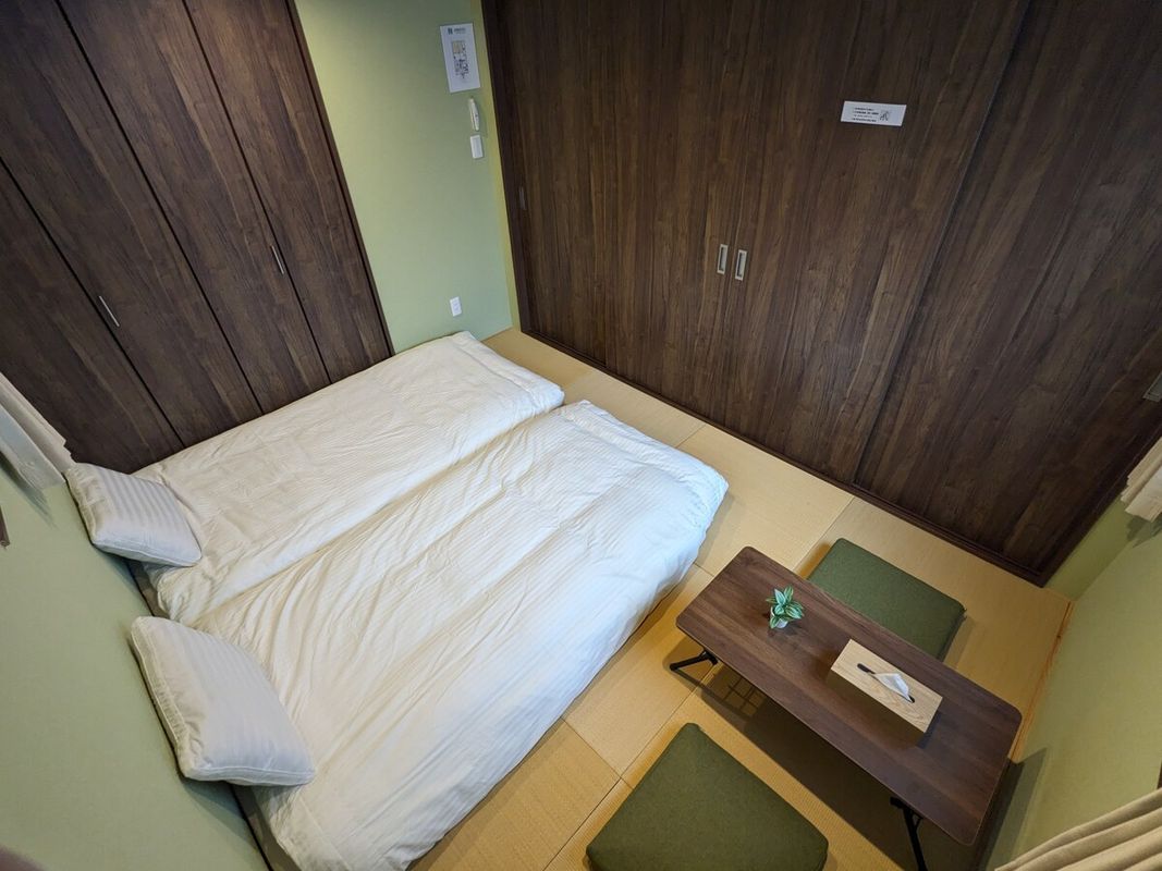I absolutely loved my stay here and would book again in a heartbeat! The atmosphere is incredibly peaceful, with a serene and calming vibe that instantly puts you at ease. The room design blends traditional Japanese elements with modern comfort—simple yet elegant, making it feel like a cozy retreat. We had a wonderful time together as a group, enjoying meals, relaxing, and just soaking in the quiet beauty of the surroundings. It's perfectly located for exploring Kyoto’s top spots like Gion and Fushimi Inari—just a short subway ride away. This place offers amazing value and a truly authentic experience. I can’t recommend it enough!