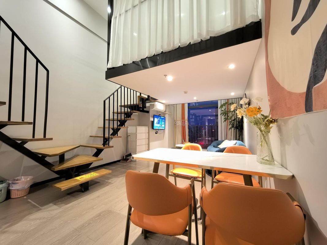 Staying at Baiya Luxury Enjoy Service Apartment in Chengdu was easily one of the highlights of my trip. I booked a two-bedroom, one-living-room loft unit, and it completely exceeded my expectations—this place feels more like a home away from home than a hotel. The layout is genius: open-concept kitchen and dining area with high ceilings give the space an airy, modern feel, while the upstairs bedroom areas are well-separated for privacy—perfect for families or friends traveling together. The Y-shaped floating staircase isn’t just functional—it’s a photo-worthy centerpiece that instantly elevates the whole vibe. Everything was spotless, down to the smallest corner, and the premium bathroom fixtures paired with smart home features made daily routines so much more comfortable. Huge floor-to-ceiling windows flood the room with natural light during the day and offer stunning city views at night—seriously, the ambiance is unbeatable. There's a rooftop garden right below the building, ideal for morning walks or evening strolls, plus access to a fitness center and swimming pool made staying active easy. Location-wise, it’s incredibly convenient—just a short walk to the metro station, and there’s no shortage of great restaurants and shopping options nearby. The staff were prompt, friendly, and genuinely attentive—from check-in instructions to handling requests, they went above and beyond. This stay truly captured what it means to live like a local while enjoying luxury comfort. Whether you're traveling with family, friends, or solo, I can’t recommend this place enough. I’ll definitely be coming back next time I visit Chengdu.