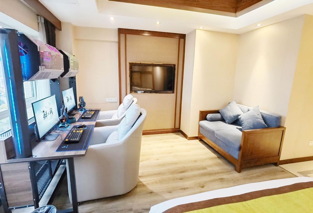 This is a gamer's paradise! With sleek modern decor, i7-12th gen processors, RTX 4070 graphics, and 240Hz pro gaming monitors paired with Logitech and Dareu gear, your gameplay will be next-level. Choose from various room types, whether you're gaming solo or with friends. Enjoy lag-free high-speed internet and unwind on plush beds after intense sessions. The location is unbeatable—just 3 minutes to the subway, and super close to the Botanical Garden and Panda Base!