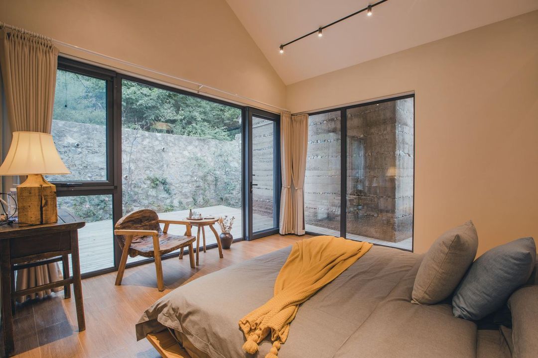 Recommended: Pofengling Mountain Retreat, a boutique inn nestled among maple groves with wooden-style rooms and floor-to-ceiling windows offering panoramic views of fiery autumn foliage. The owner-curated eco-tour routes guide visitors through valleys to pick wild walnuts and make natural jams. Just a 5-minute walk from the main entrance, it combines privacy, comfort, and easy access—perfect for a serene autumn getaway near Beijing.