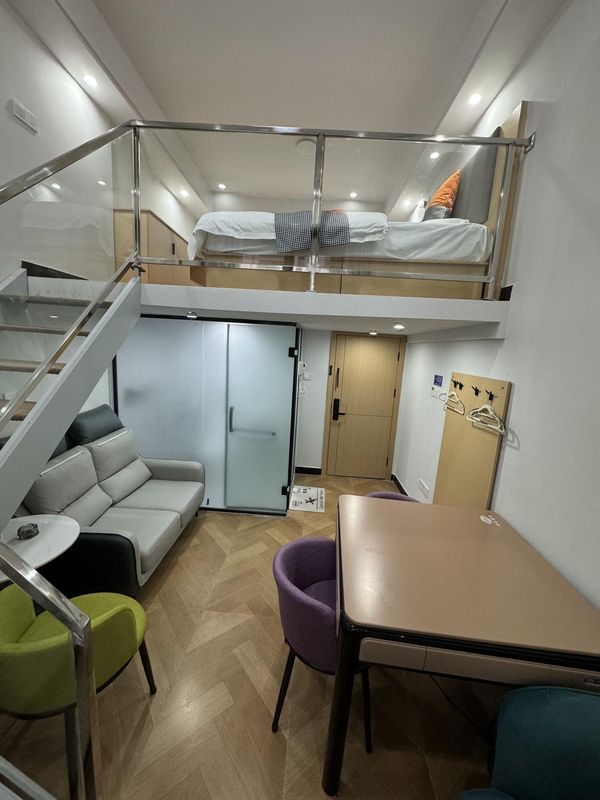 Stay in stylish LOFT suites with a touch of retro charm – floral tiles and metallic accents make every corner Instagram-worthy! The split-level design keeps living and sleeping spaces separate for ultimate comfort. Just say “Hi Xiaodu” to control lights, curtains, and more with smart home tech. Perfectly located near Yellow Crane Tower and East Lake, with subway access for easy exploring. Pet-friendly with 24/7 front desk, plus family amenities and luxury bedding for a restful stay. Bonus: free parking and robotic service add futuristic flair!