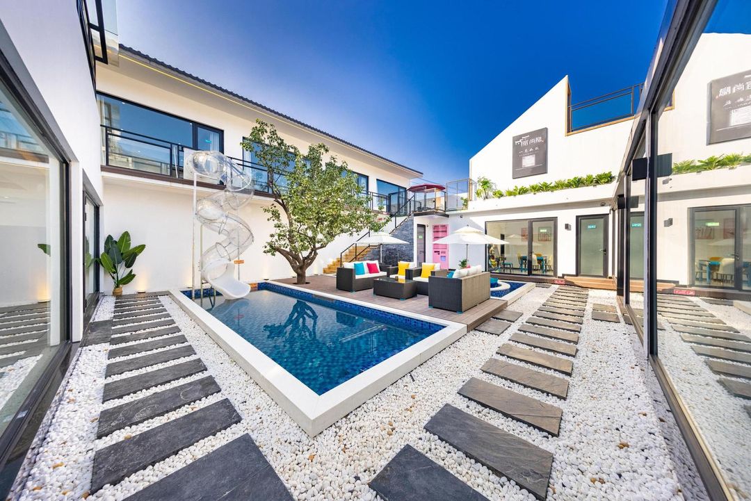 This is a poetic homestay nestled beside Qinglong Gorge, surrounded by nature and away from the hustle and bustle. The homestay offers a range of facilities, including a family cinema, swimming pool, children's playground, and picnic area, making it perfect for families or groups of friends. It’s also pet-friendly, so you can bring your furry companions along. In the evening, you can sing karaoke in the multi-functional hall or enjoy tea in the tea room, savoring the peaceful moments. The host is a feng shui master, and if you’re lucky, you might get to discuss metaphysics with them. Here, you’ll feel like returning to your roots, embracing the tranquility and freedom of the mountains and waters.
