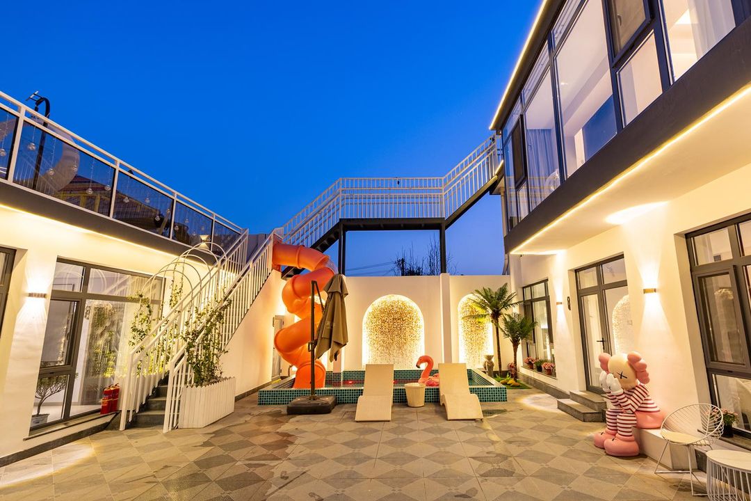 This is truly a magical getaway! With its warm yellow walls and playful arch design, this place radiates charm. The vibrant outdoor pool with exciting slides is fun for both kids and adults. Rock the night away in the KTV room equipped with premium sound systems, or enjoy quality family time in specially designed kid-friendly rooms. Surrounded by nature, you can BBQ, play billiards, or even bring your pets along. Don’t miss the National Day special offers – book now for an unforgettable stay!