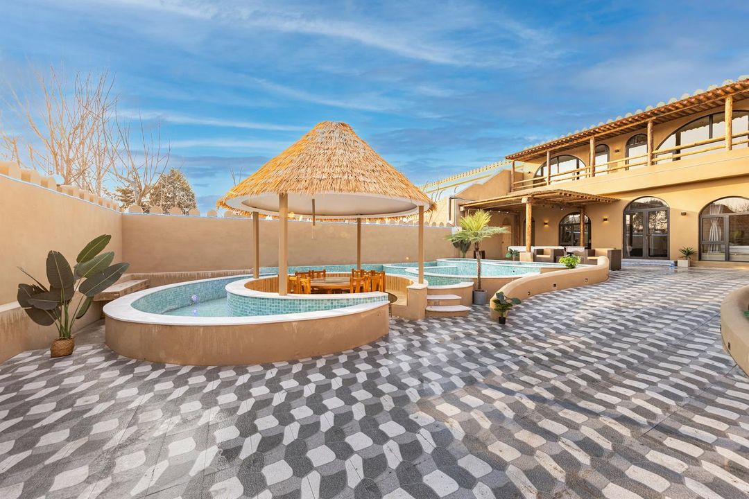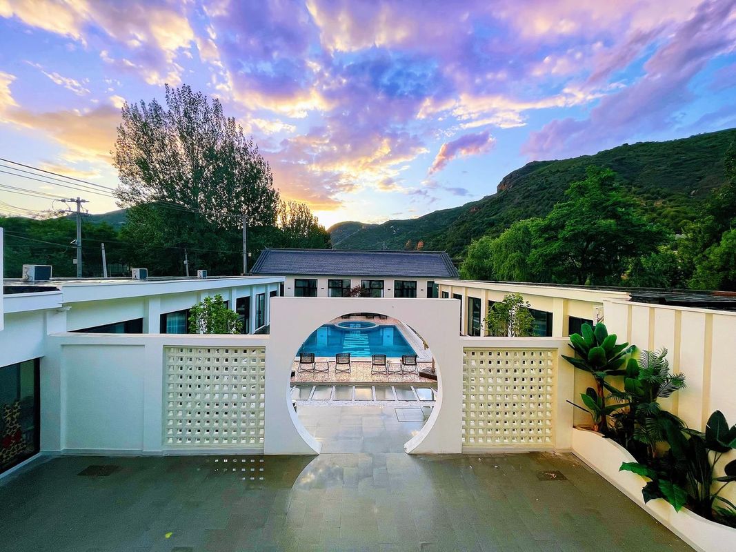 This is pure vacation bliss! Enjoy private hot springs and a heated pool, or soak in your room’s zen-like tub. The loft rooms feature cozy balconies with Great Wall views, blending Moroccan charm into the design. Perfect for group gatherings with KTV, BBQ pits, and a home theater—ideal for families or friends. Plus, it’s pet-friendly, so bring your furry pals! Holidays just got way more relaxing.